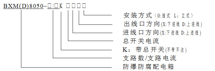 主要適用于1區、2區危險場所,ⅡA、ⅡB、II C類T1~T6組爆炸性氣體或蒸氣環境,在交流50Hz、額定電壓至380/220V的電路中,作為照明及動力電路的通斷之用。