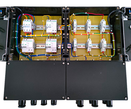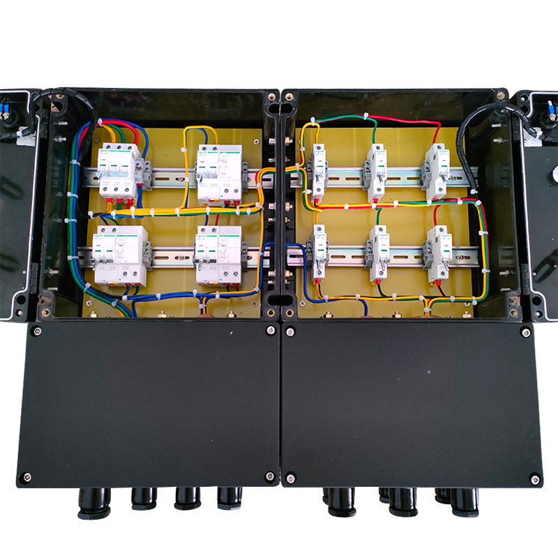 5.5內裝隔爆型殼體,鋁合金殼體內裝空開,通過操作殼蓋上的手柄而實現分合;